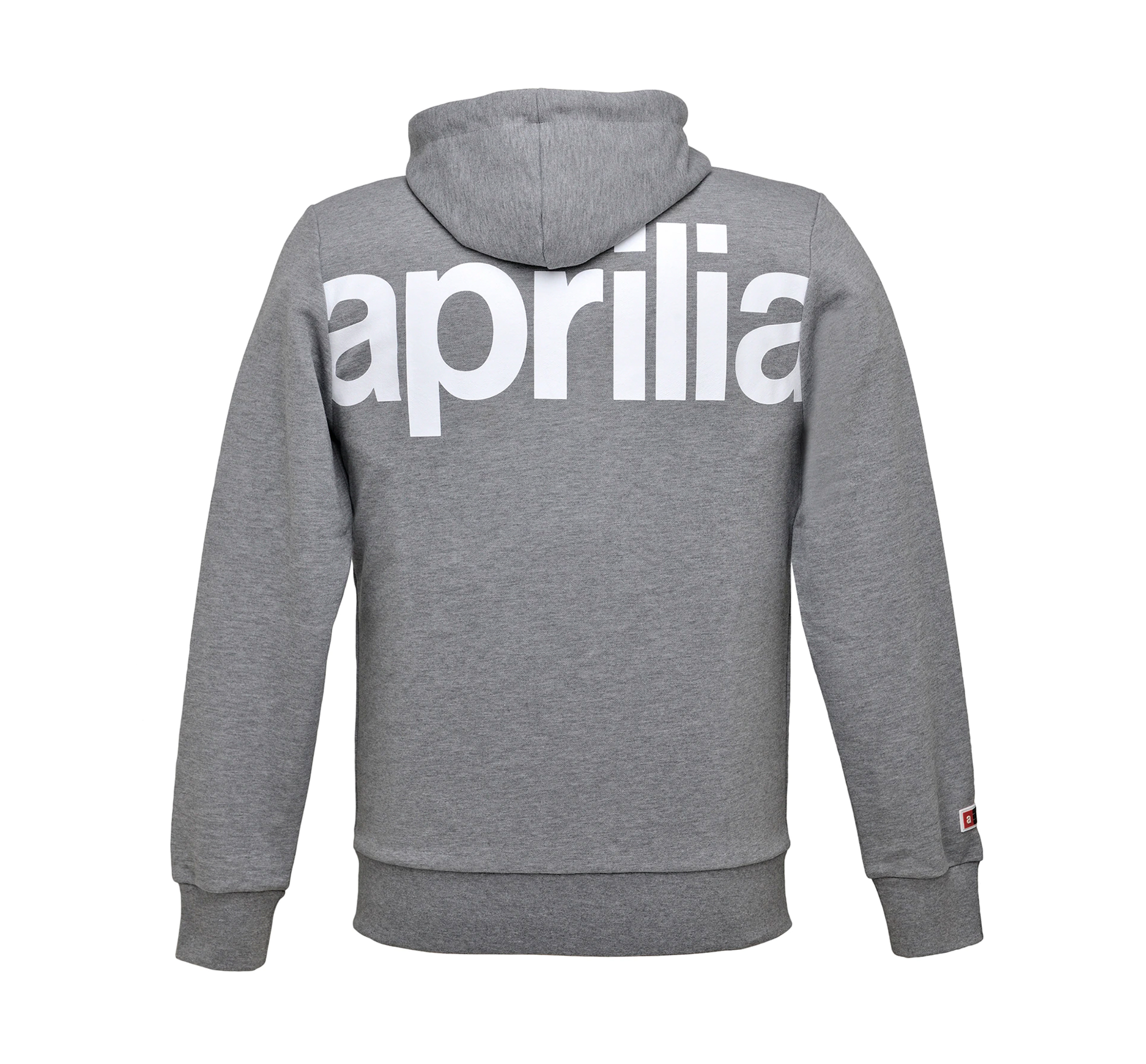 The Aprilia sweatshirt for men is made with a no-sew French terry interior that provides lightweight warmth and is ideal for all seasons. The cotton reinforcement tape on the collar ensures high durability, while the contrasting zipper with metal puller adds a graphic accent. The kangaroo pocket with ribbed cuffs, the tone-on-tone bonded hood and the ribbed cuffs and hem round off the garment. With the Aprilia logo print on the heart, the eye-catching lettering on the back and the soft PVC patch appliqué on the sleeve, this sweatshirt is a blend of style and high-quality details.
