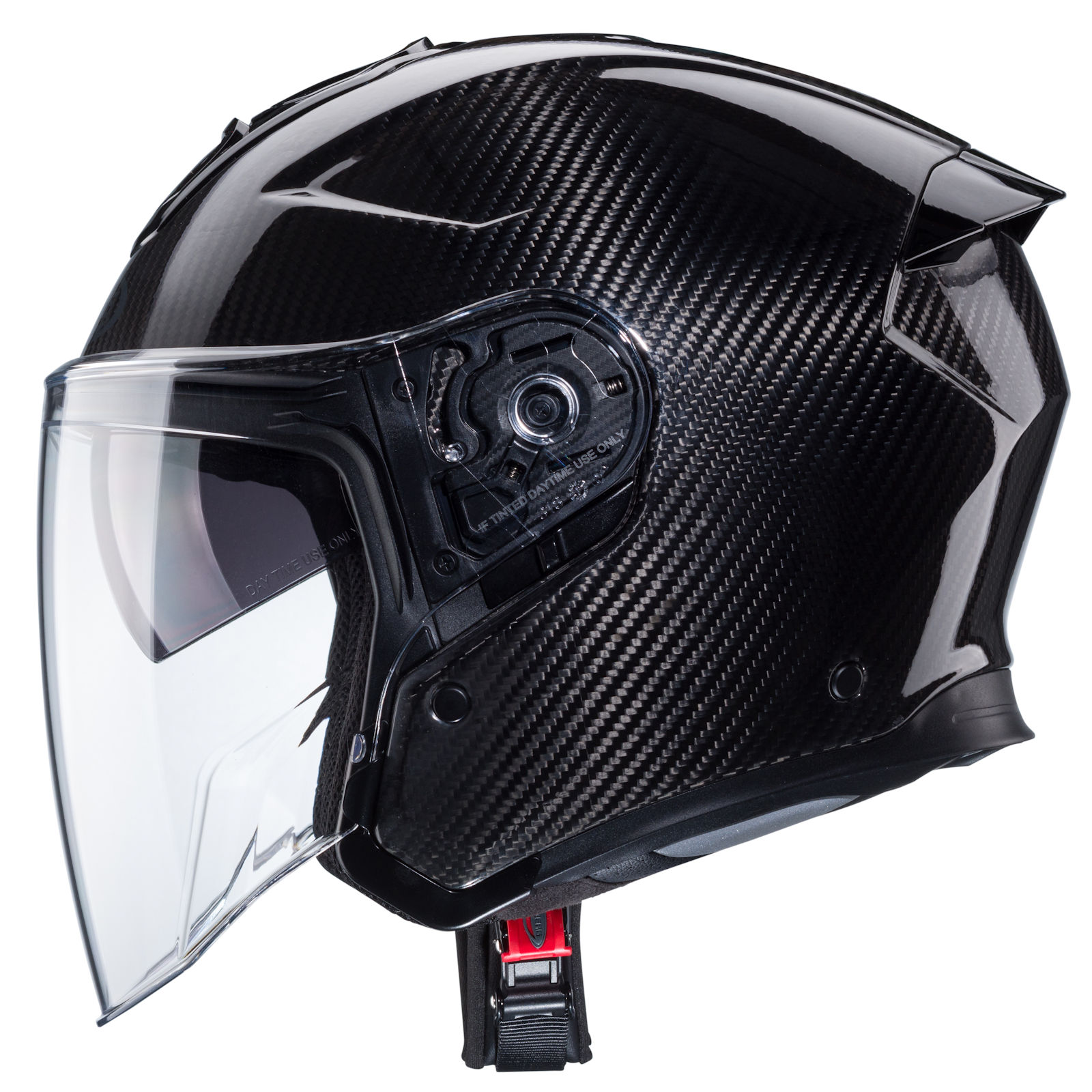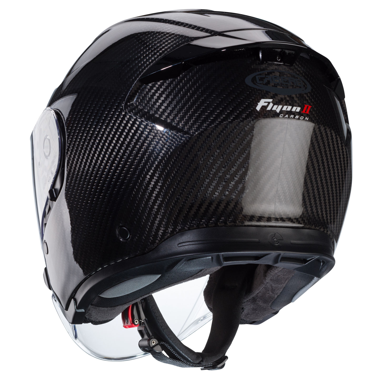 The Caberg Flyon 2 helmet is a high quality jet helmet designed for riders who value comfort, safety and style. The outer shell is made of carbon, which ensures excellent stability and low weight. The helmet has a large, scratch-resistant visor with a wide field of vision. An integrated sun visor (Double Visor Tech) offers additional protection from bright light and can be easily operated using a lever on the side. Adjustable air inlets at the top and air outlets at the back of the head ensure optimum ventilation and effectively dissipate warm air. The inner lining is made of breathable, hypoallergenic materials, is fully removable and washable and offers maximum comfort on every ride. The helmet is equipped with a micrometric quick-release buckle and is Bluetooth compatible so that it can be used with the Caberg Pro Speak Evo Bluetooth communication system as well as other common Bluetooth systems from Sena. The Flyon 2 meets all current ECE 22.06 safety standards and is available in different colors and designs to suit individual preferences.
