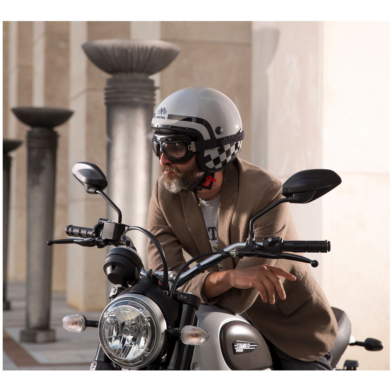 The jet helmet Freeride from Caberg is not only lightweight and comfortable, but also offers protection while driving through the long visor. The helmet shell is one of the smallest on the market and is available in many color variations.