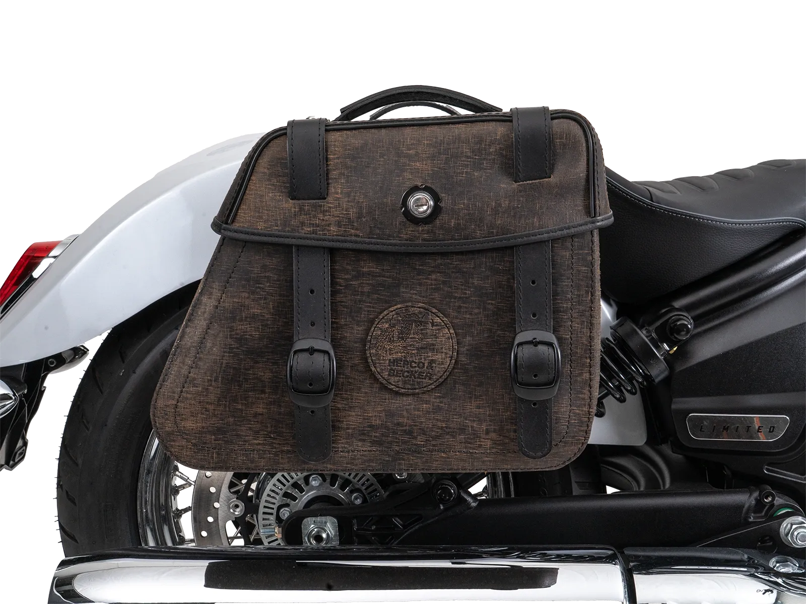 The Hepco&Becker Rugged Cutout leather bags are attached to the model-specific Rugged Cutout side carrier. Both bags have a specially cut-out rear panel to reduce the overall width of specially selected motorcycle models with a widely protruding shock absorber . The bags are attached to the carrier by means of a quick-release fastener inside the bag. If carrier and bags are ordered together, Hepco&Becker adapts the quick-release fastener to the respective carrier and attaches it to the bag.