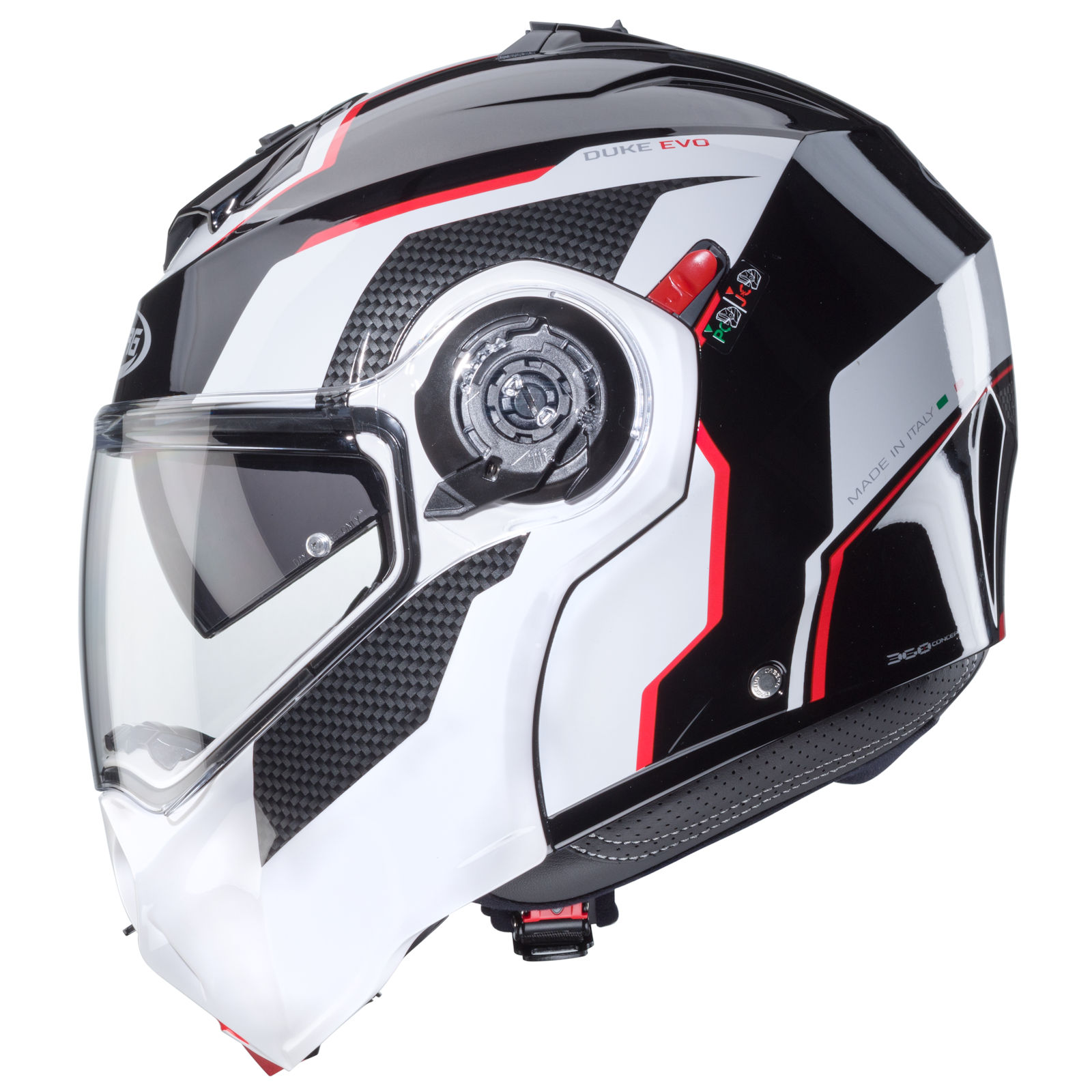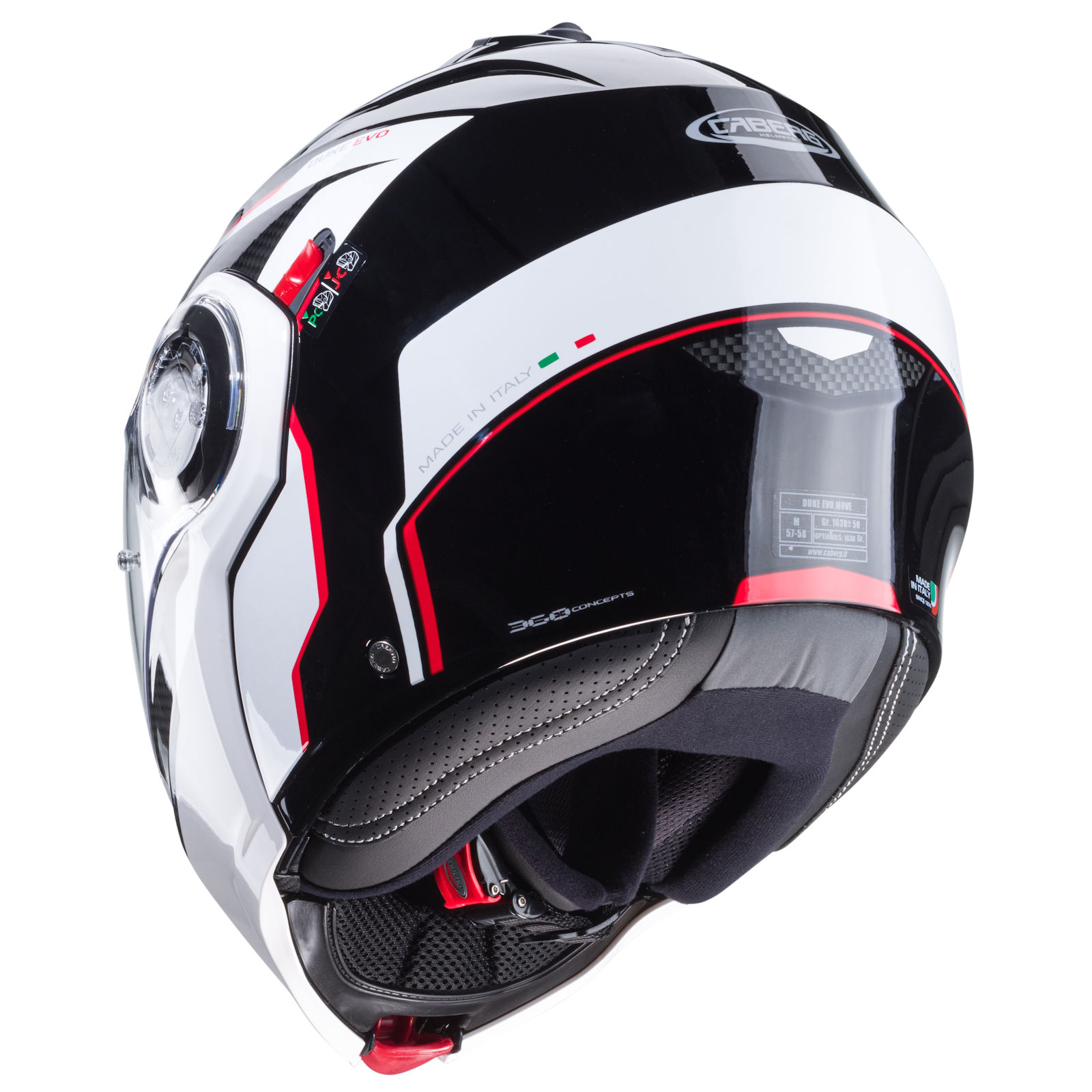 The Caberg Duke Evo flip-up helmet with the Move decor in the colors black/white/red has the following features: