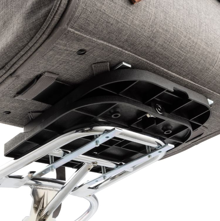 With the fastening system, the large 35 liter SIP Classic bag can be attached to and detached from a luggage rack in no time at all. The perfect companion for everyday use or on a Vespa tour. The Quick Release System offers the ultimate solution for effortlessly attaching the Classic bag to a luggage rack. This innovative system makes handling the bag easier than ever before. The system consists of a base plate for the bag and a carrier plate for mounting on a luggage rack. The base plate is fixed to the bottom of the bag without the need to drill holes. The carrier plate, the counterpart, is mounted on the luggage rack of the Vespa. This creates the perfect basis for a stable and secure connection between the bag and the Vespa. The highlight of this fastening system is the quick-release mechanism. The bag is secured by simply placing it on the carrier plate. In addition, the bag is reliably protected against unauthorized access with the integrated lock.