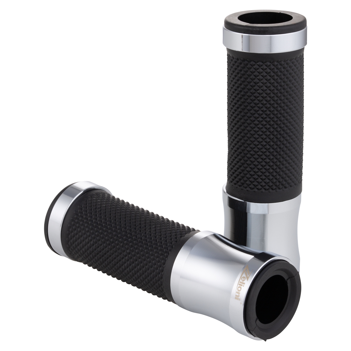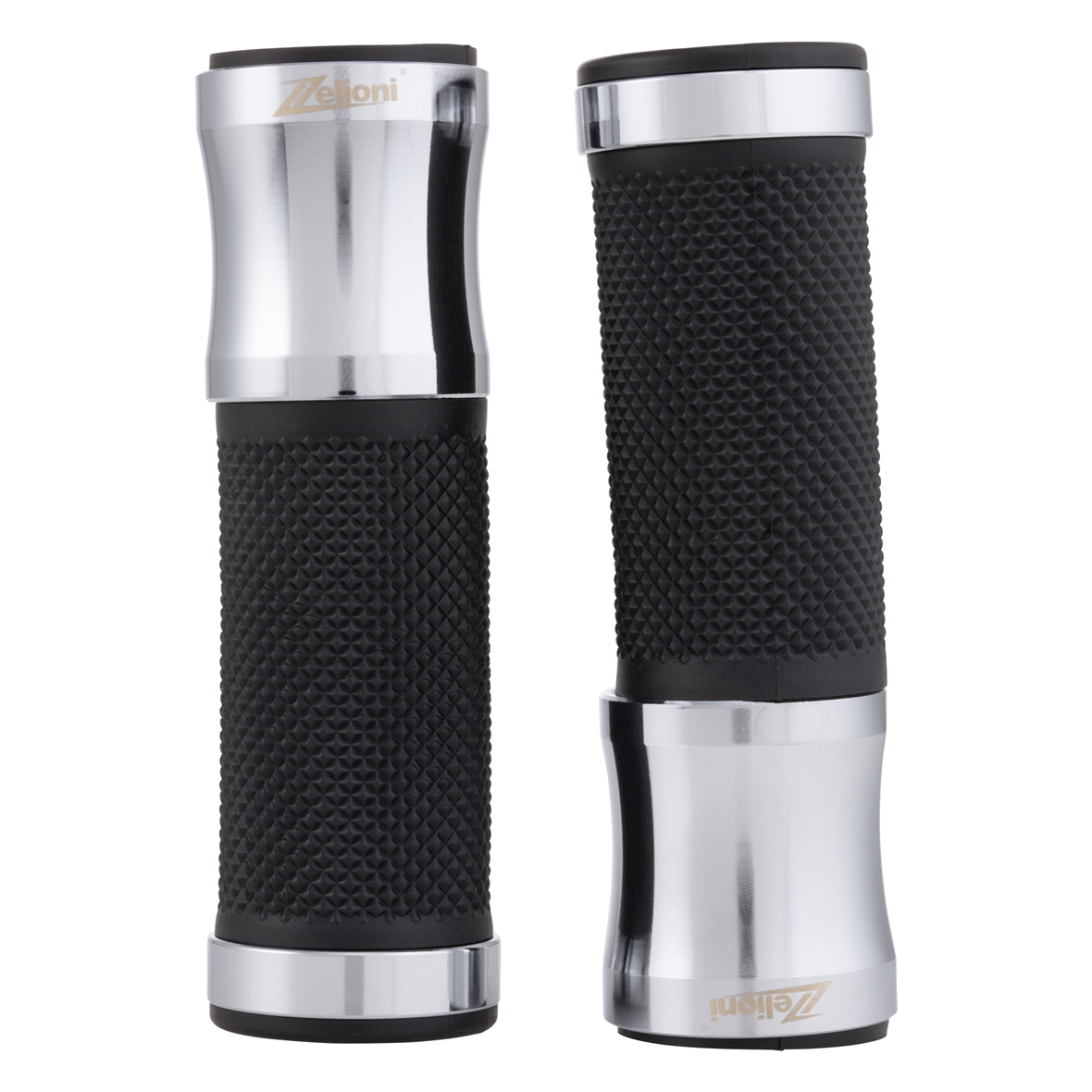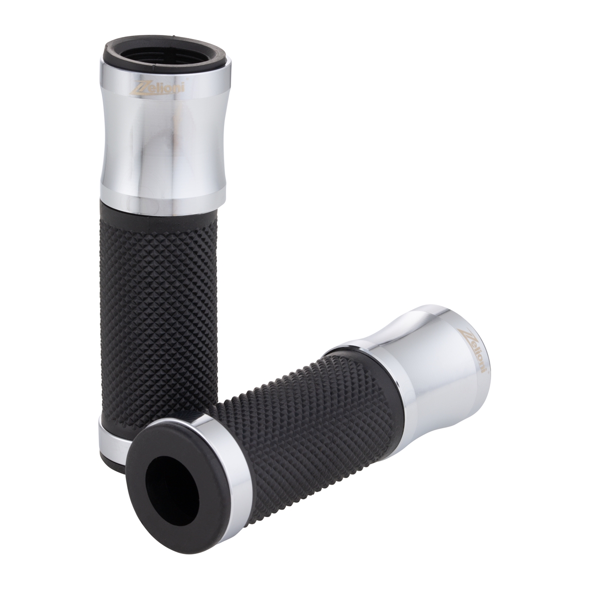 Ergonomic grip with rubberized palm. Aluminum caps with laser engraved ZELIONI logo. Ends open for mounting handlebar end weights/mirrors.