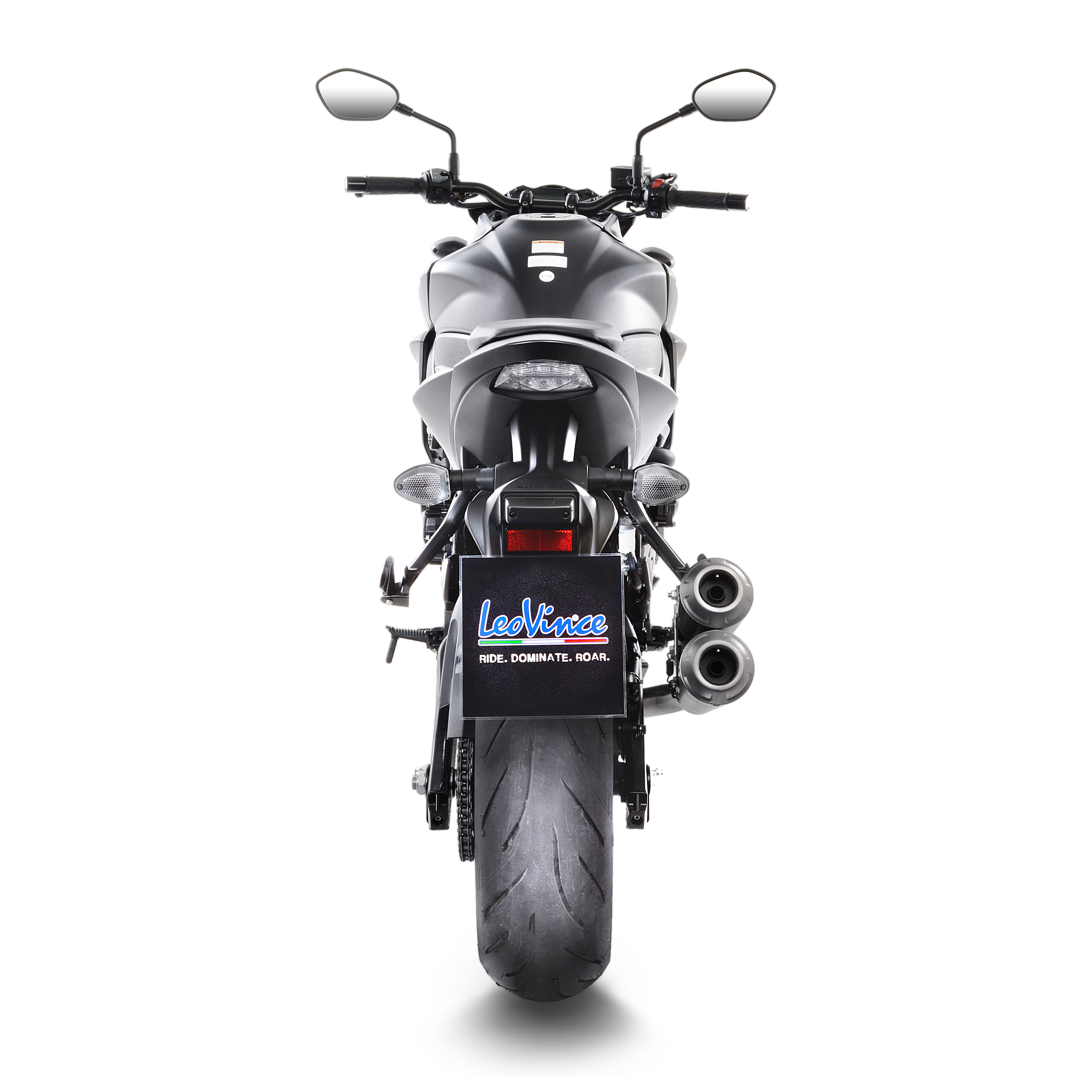 The GP Duals Slip-On Exhaust systems are completely made of AISI 304 stainless steel, which guarantees long-lasting durability. Both mufflers are finished with a heat-resistant ceramic-based metallic paint. This guarantees a long resistance to high temperatures. The LeoVince logo, which is applied with the latest laser technology on the opaque ceramic paint, beautifies this new slip-on system. Of course, this system is E-approved and is completely easy to install by means of the laser-made custom-fit brackets.