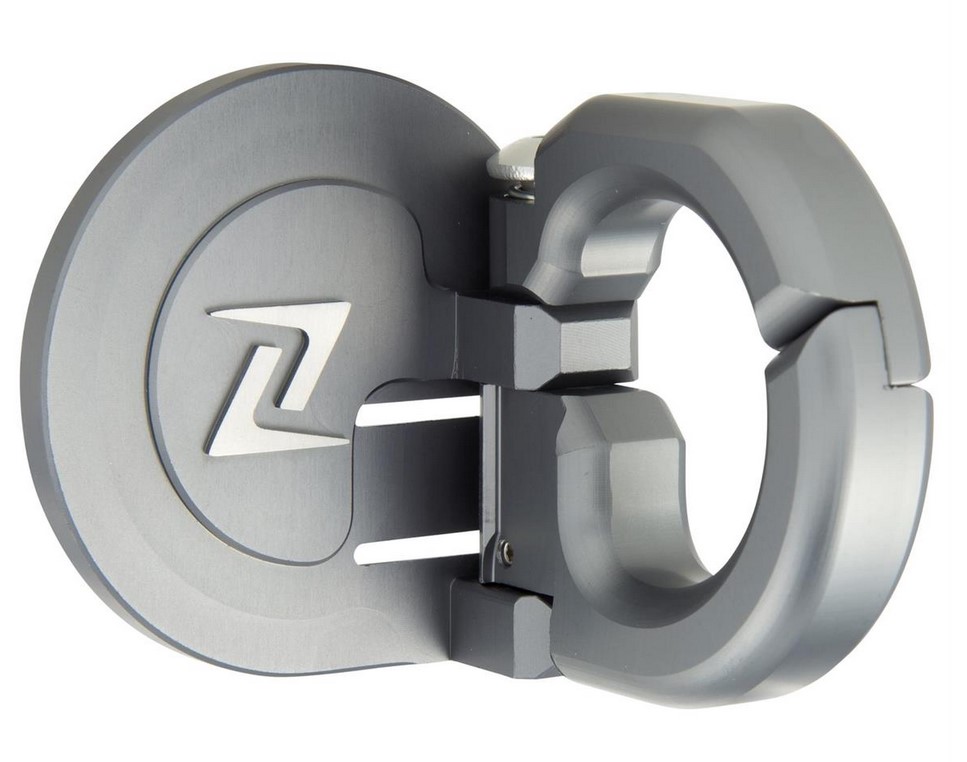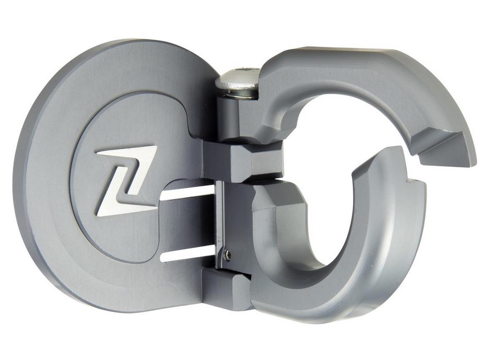 Luggage hook made of high strength aluminum, CNC machined, gray matt, anodized, with ZELIONI logo. Foldable, with locking device.
