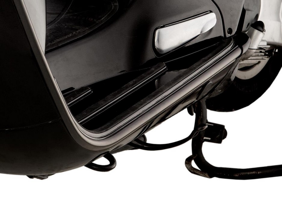 Mono slot tube / leg shield surround SIP STYLE in black for the Modern Vespa models. Fits perfectly with all colors of Modern Vespa models and gives a unique custom look. OEM quality "Made in Italy". Simply clips into place on the frame. No special tools are needed.