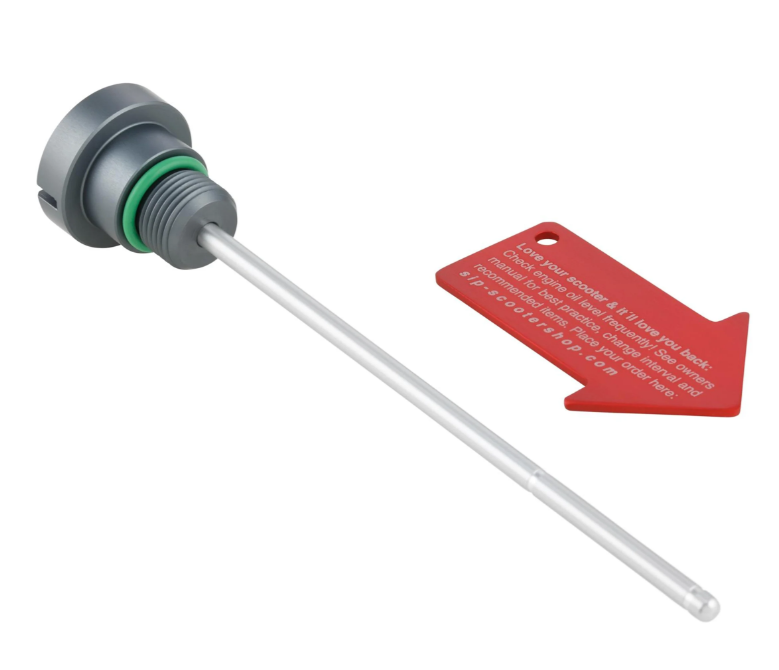 The oil filler plug / dipstick SIP PORDOI for the engine oil is CNC machined from high quality aluminum. Due to the simple design, the oil filler plugs look nice on any vehicle and fit well into the overall appearance of the Vespa. On the dipstick the scale is aligned according to the original filler plugs, the matching sealing ring is already attached.