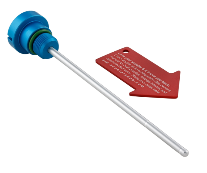 The oil filler plug / dipstick SIP PORDOI for the engine oil is CNC machined from high quality aluminum. Due to the simple design, the oil filler plugs look beautiful on any vehicle and fit well into the overall appearance of the Vespa. On the dipstick, the scale is aligned according to the original filler plugs, the matching sealing ring is already attached. Often the standard filler plugs are stolen from parked vehicles. In order to make the work more difficult for unauthorized persons, SIP has thought of a small security plus and supplies a special assembly tool with the filler plugs which can also be used as a key ring.