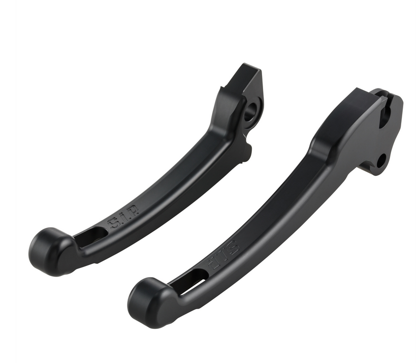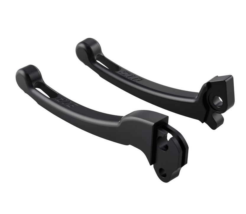 The CNC-machined sports levers are ideal for sporty ambitious drivers not only because of the look. The length of the levers is such that they are, even when using a hydraulic brake cylinder, the same width on both sides. At their end, the levers are provided with a predetermined breaking point. This is to prevent breakage in the event of a fall. This allows the scooter to be operated even after a minor accident. Color-matched brake or clutch lever is available separately. For models with fully hydraulic disc brake, please check master brake cylinder before ordering (HENGTONG or GRIMECA). Supplied in pieces.