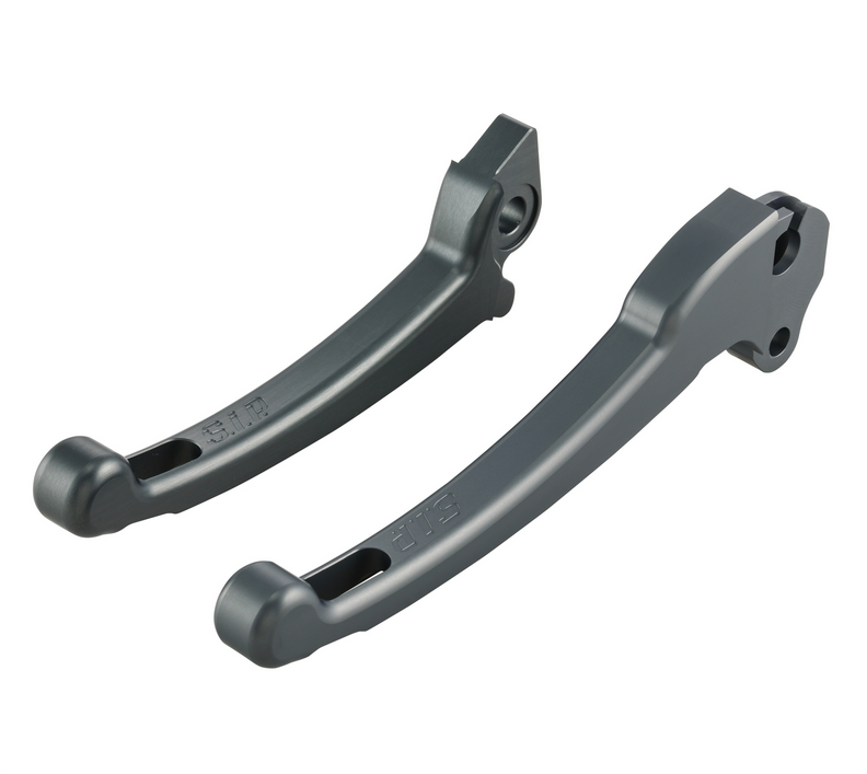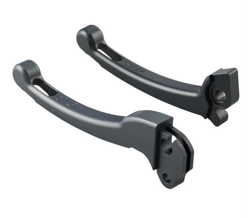 The CNC-machined sports levers are ideal for sporty ambitious drivers not only because of the look. The length of the levers is such that they are, even when using a hydraulic brake cylinder, the same width on both sides. At their end, the levers are provided with a predetermined breaking point. This is to prevent breakage in the event of a fall. This allows the scooter to be operated even after a minor accident. Color-matched brake or clutch lever is available separately. For models with fully hydraulic disc brake, please check master brake cylinder before ordering (HENGTONG or GRIMECA). Supplied in pieces.