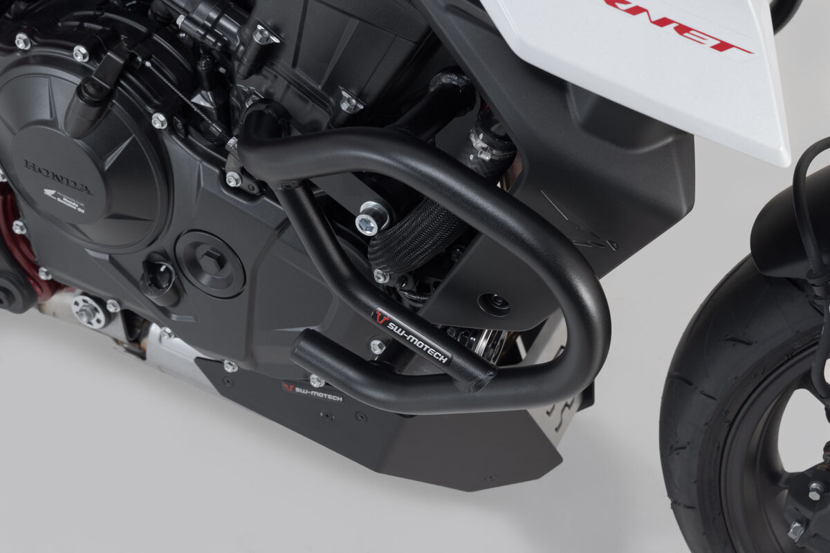 Suitable for the Honda CB750 Hornet (22-), the crash bars are made of 22 mm diameter tubular steel with weather and corrosion resistant powder coating in black. The surface finish is applied in a state-of-the-art facility at SW-MOTECH's plant in Brno, Czech Republic.