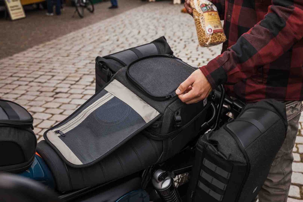 The new Legend Gear rear bag LR3 impresses with its compact design and high flexibility. With a basic volume of 6 liters, it fits perfectly on the pillion seat or luggage rack of sporty motorcycles. If required, the volume can be expanded to up to 12 liters - ideal if you need more storage space on the road. Whether you're on a day trip, short trip or daily use: the LR3 is your practical companion if you want to transport light luggage safely and within easy reach. Get ready for your next journey of discovery with a luggage system that is easy to handle and looks good at the same time. Our redesigned Legend Gear rear panniers offer clever storage space for the commute, evening ride or weekend tour. The luggage now comes in a classic all-black design with a subtle look, is extremely robust and yet pleasantly soft - and therefore perfect for anyone who values style and durability. Developed from a hard-wearing polyester fabric that retains the natural cotton character, the material boasts above-average UV values and is water-resistant thanks to the PU coating on the inside. Perfect details such as imitation leather-covered zippers create a harmonious overall concept with recognition value.
