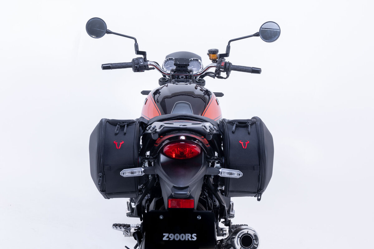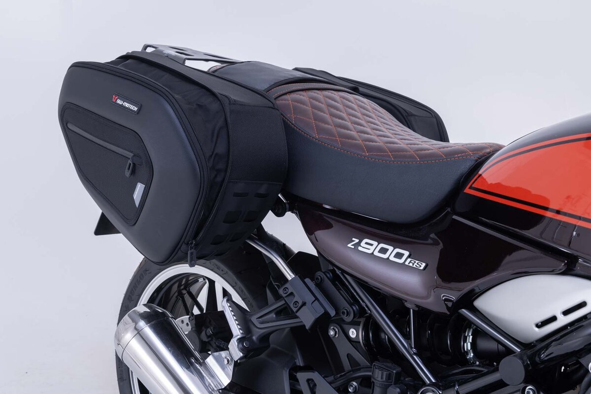 The PRO BLAZE saddlebags with removable spacer bars impress with their sporty look, low weight and clever fastening system. SW-MOTECH manufactures the bags from robust and particularly UV-resistant 1680D ballistic nylon. In combination with side walls made of dimensionally stable EVA material, the luggage is protected from splash water and dust. Specifically developed for sporty motorcycles, the saddlebags only have a minimal impact on riding characteristics. If you are traveling without luggage, the spacer bars can be removed in one easy step, leaving only inconspicuous brackets on the bike.