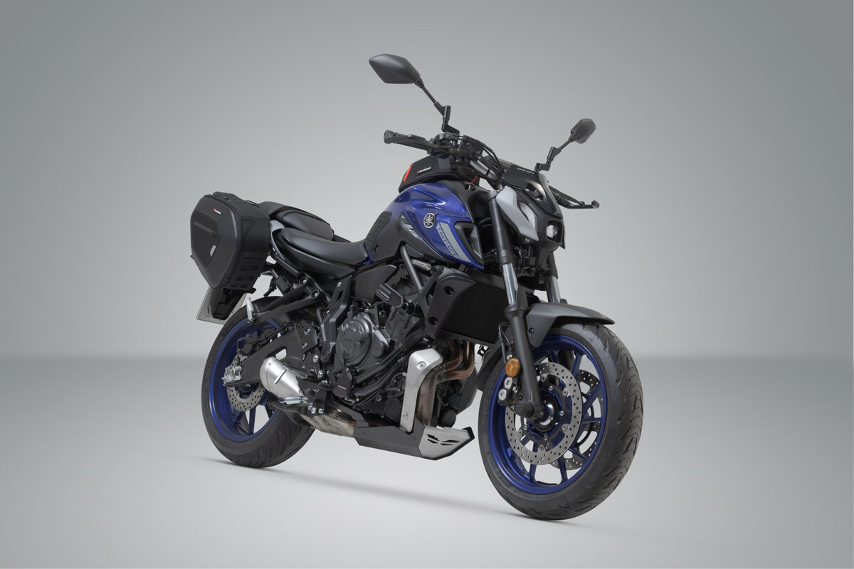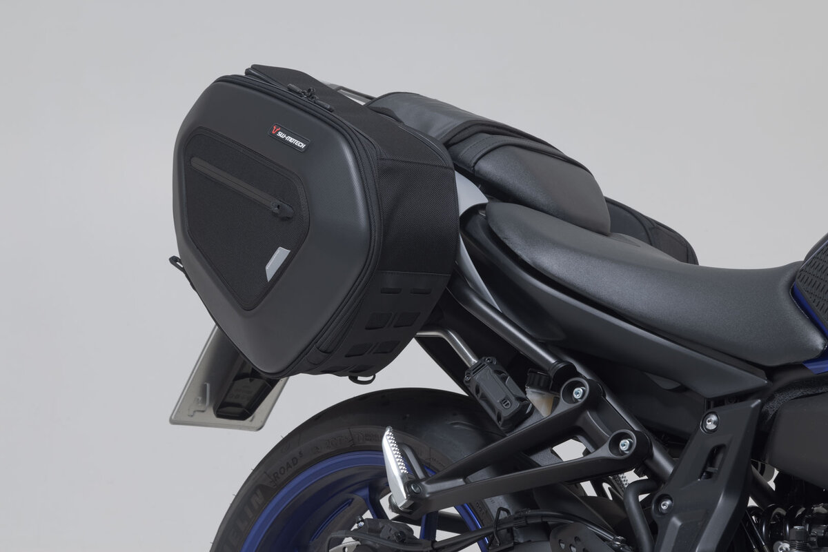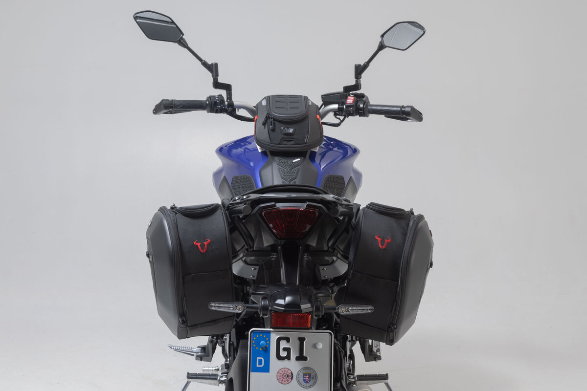 The high version of the PRO BLAZE saddlebags is specially designed for motorcycles with high exhaust. Due to the elevated position, the bags are not affected by the heat radiation of the exhaust. SW-MOTECH manufactures this bag set with the matching spacer brackets for the Yamaha MT-07.