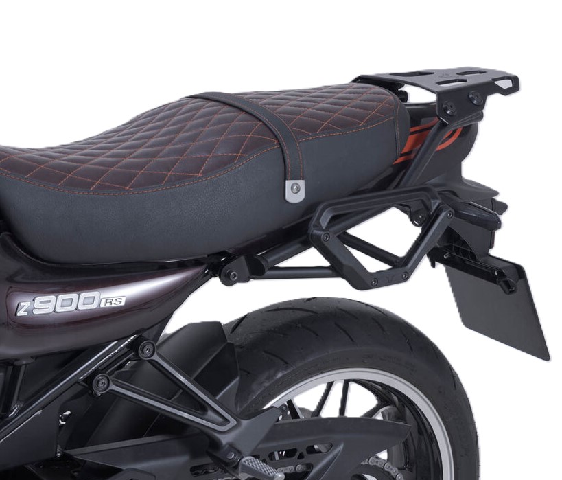 The V-LOC side carrier is precisely matched to the rear of the Kawasaki Z900RS/ Cafe/ SE, 50th Anni and designed to fit as close as possible to the vehicle.