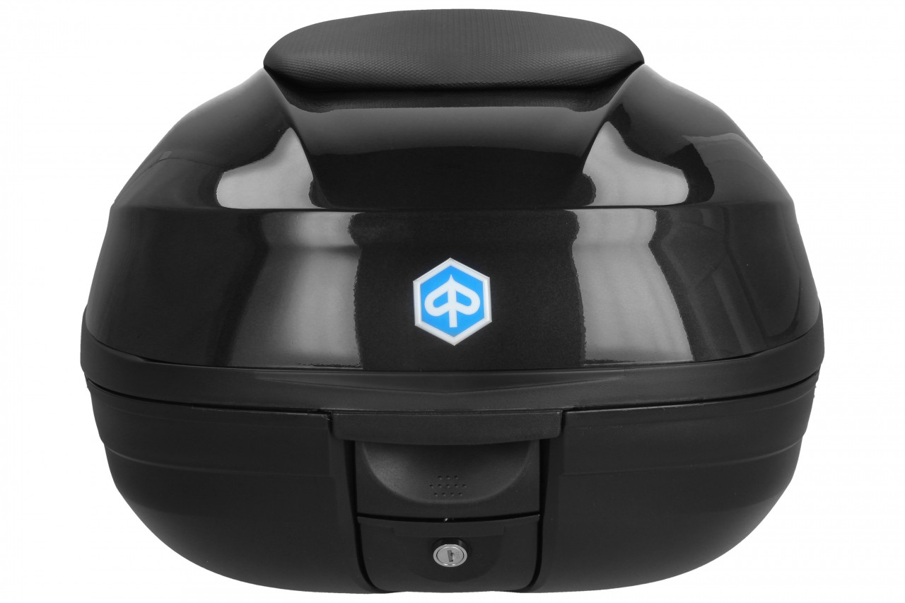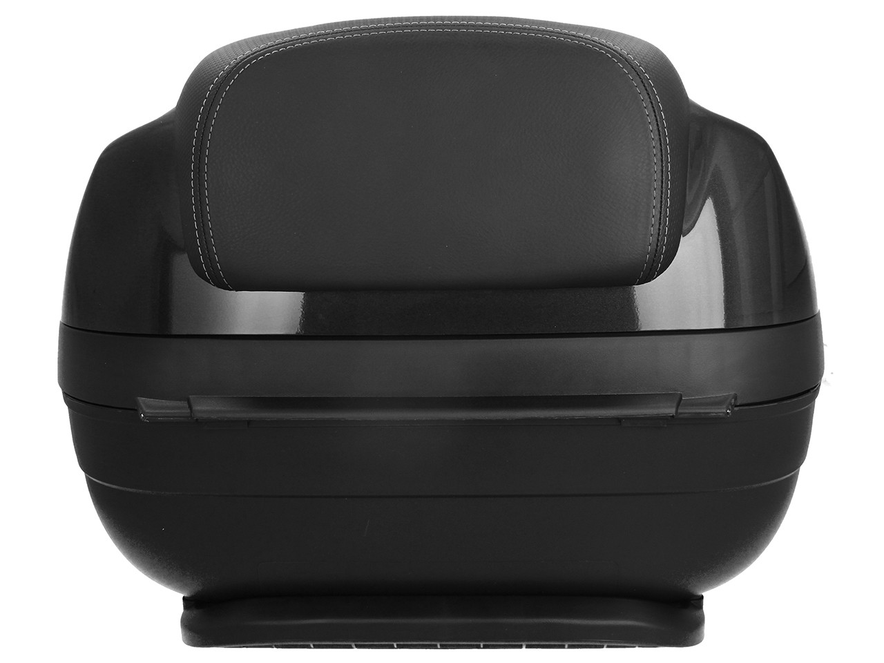 Top Case with quick mounting system. Provides space for a modular helmet. Top case painted in vehicle color, with comfort back cushion for the passenger, in the same material and finish of the seat.