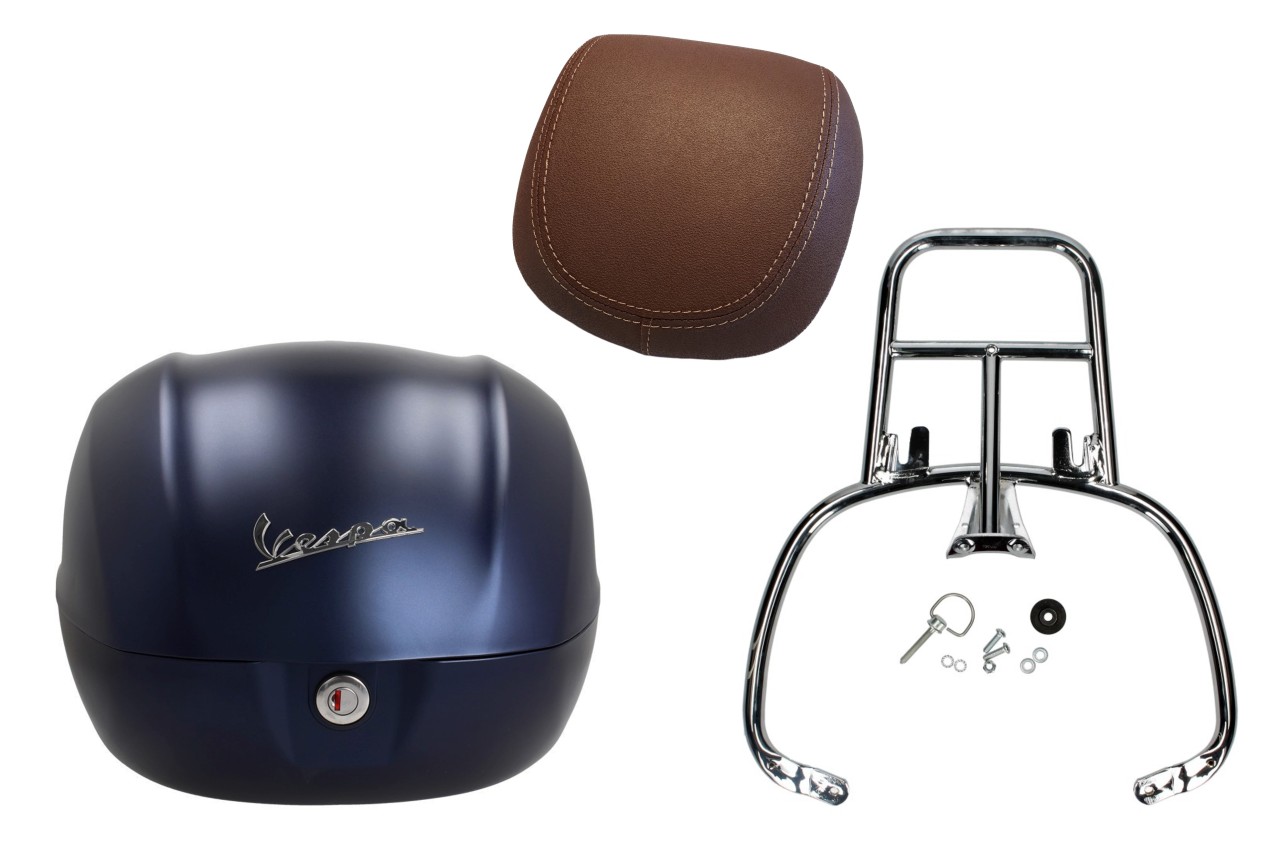 Topcase Kit 32L deep blue matt opaco (288/A), back cushion dark brown for Vespa Primavera