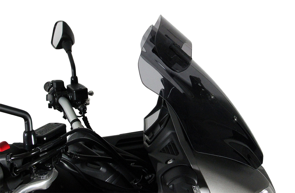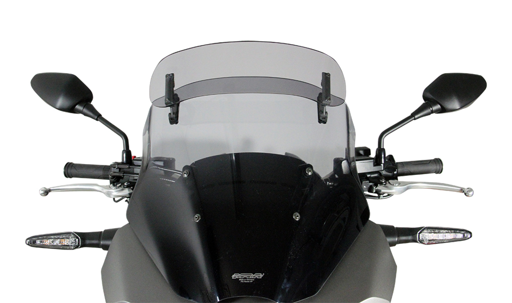 This touring screen has a spoiler at the end that can be manually adjusted to the desired position in seven steps. The rear flow of the spoiler takes the wind pressure from the driver and at the same time reduces turbulence. The Vario- Touringscreen is available in clear and smoke gray.