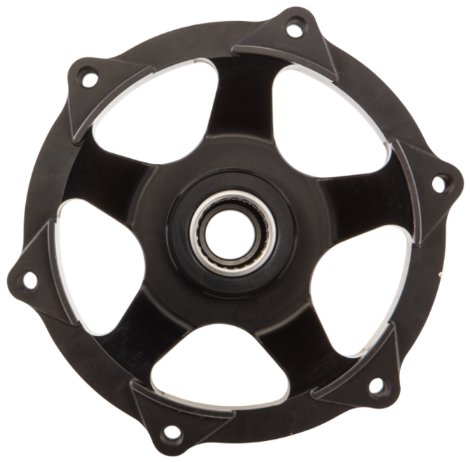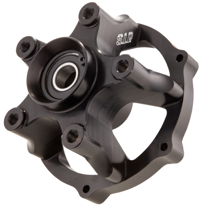 For the CNC machined wheel hub from SIP a high-strength aluminum alloy is used as a basis. Due to the CNC machining and fine balance of the wheel hub and the extremely smooth running bearings, you get a noticeably nicer concentricity compared to the original component. The wheel hub is suitable for PIAGGIO steering columns (eg MP3/GTS, etc.) in conjunction with a brake disc with 6-hole mount and pitch circle diameter of 105mm. For models up to 2013, the sprocket is required to drive the speedometer worm (Piaggio part no. PI267818), models from 2014 have a speed sensor integrated in the wiring harness as standard, here the sprocket is no longer required.