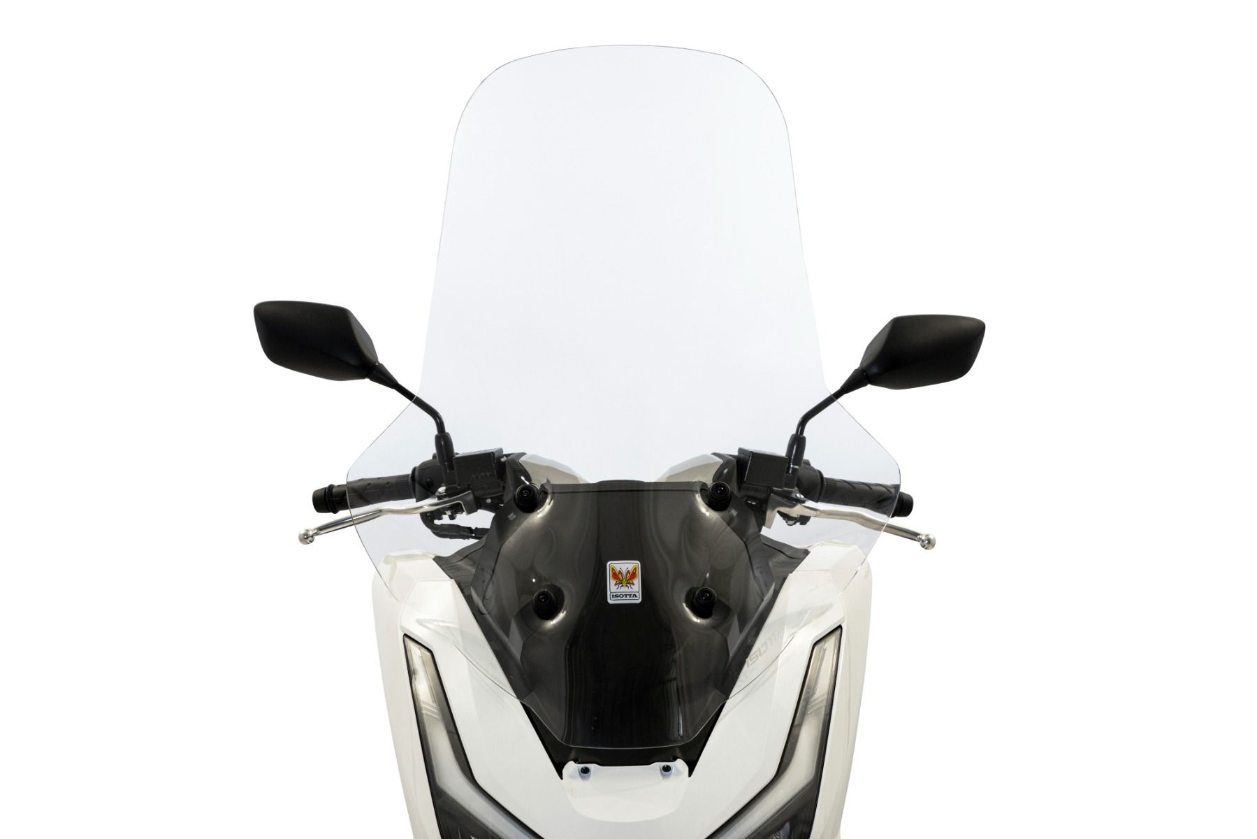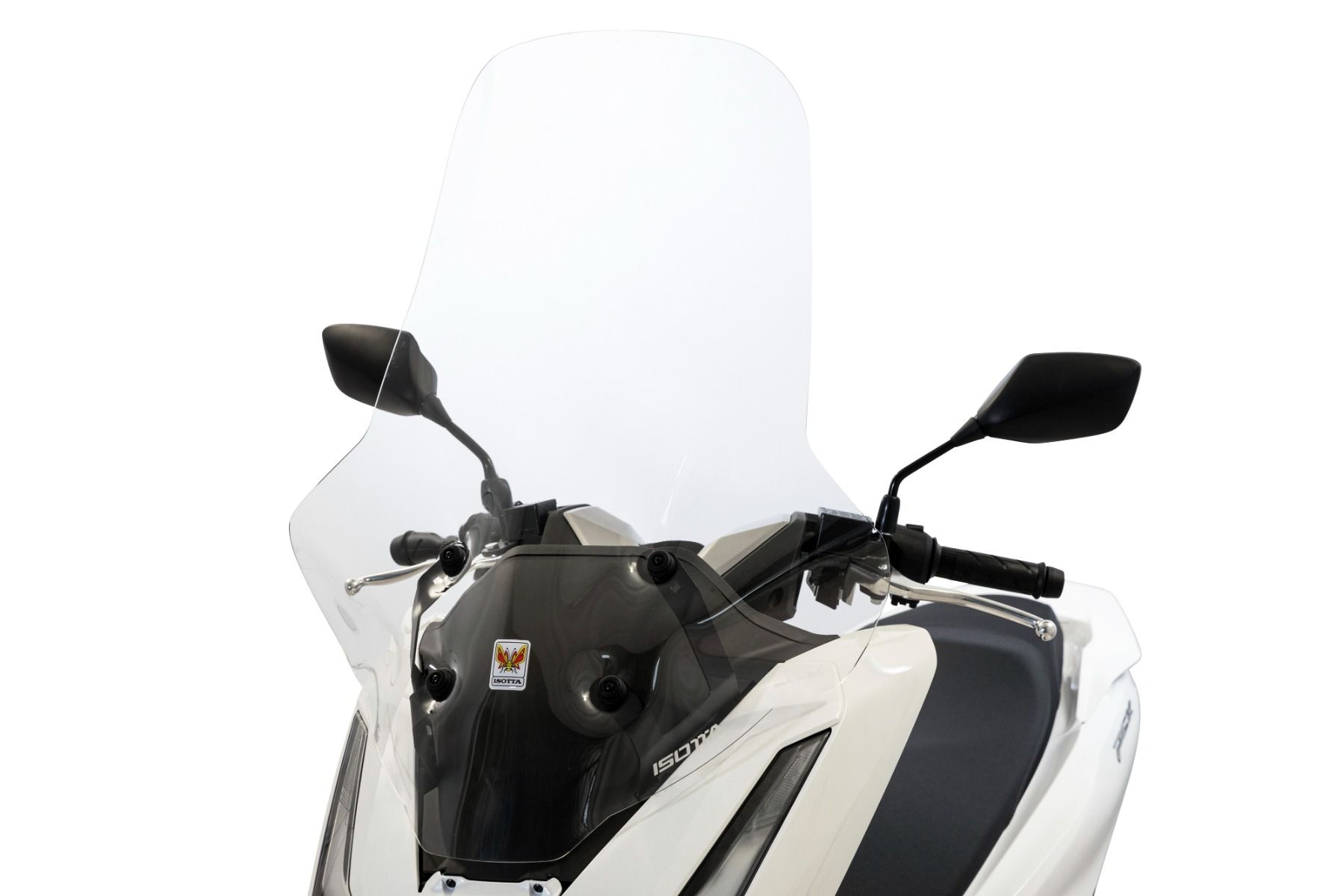 The Isotta PCX 125 2025 windshield is larger than the original HONDA PCX windshield and has been designed to ensure an optimal riding experience. The material is high quality Plexiglas (PMMA) sourced from a national or European supply chain to guarantee the highest quality and traceability of Isotta products, which are all made in Italy. This material retains its transparency and shine over time. The windshield brackets are conceived with a minimalist and aesthetic design approach to maximize visibility, improve the appearance of the vehicle and eliminate the old annoying fixings.
